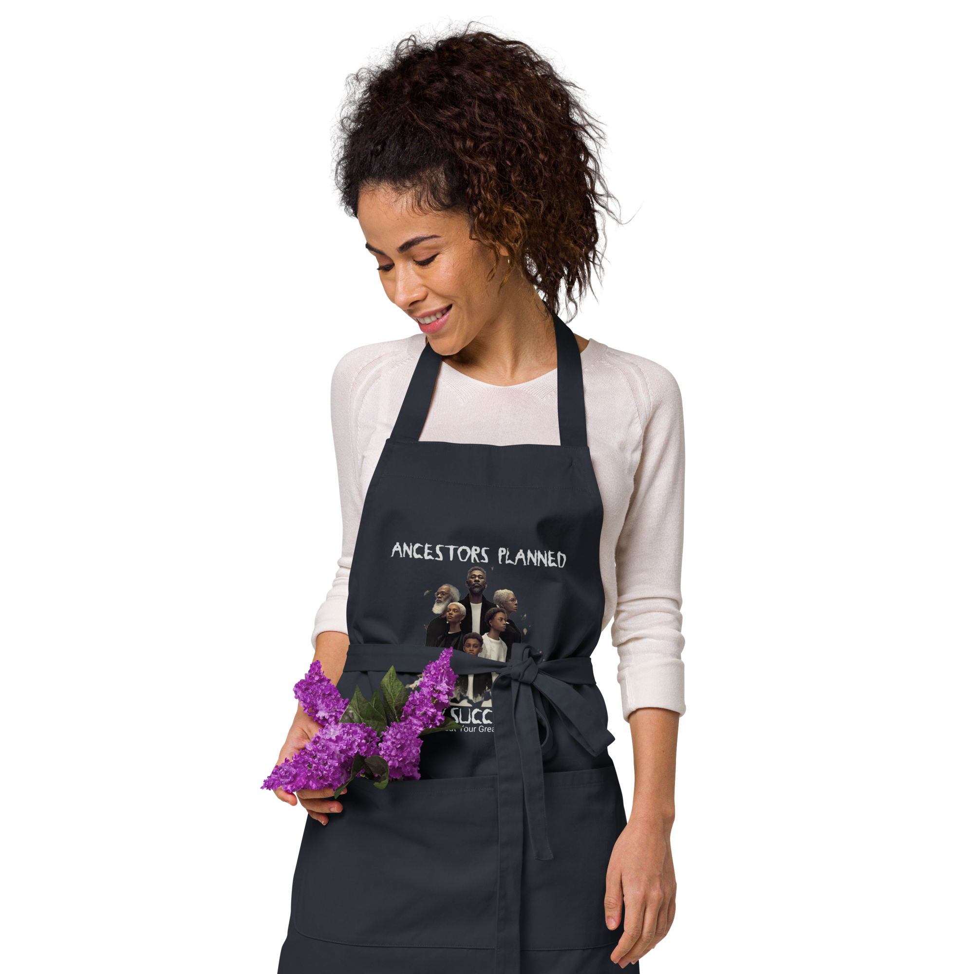 Ancestors+ Black Family , White Logo & Black Organic cotton apron