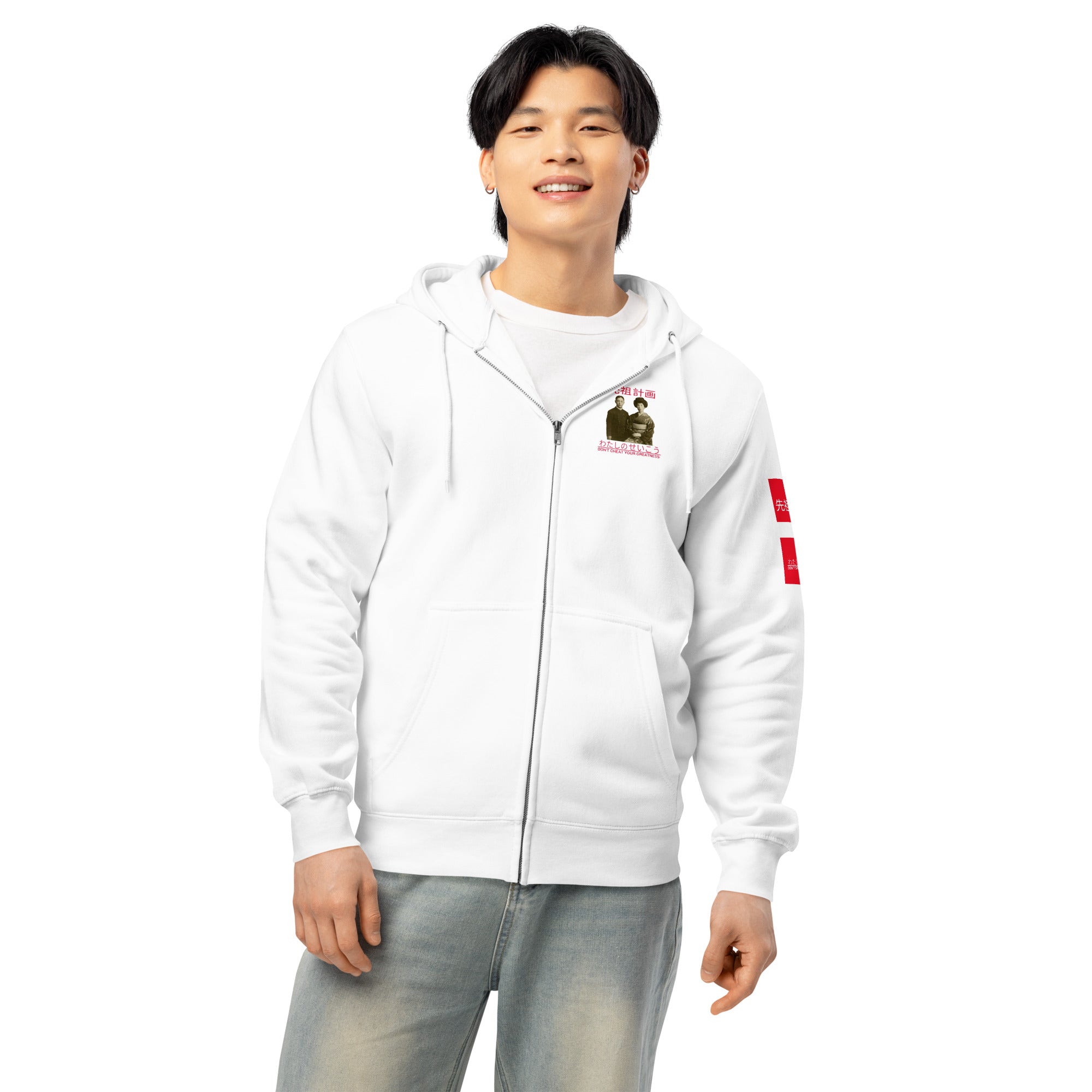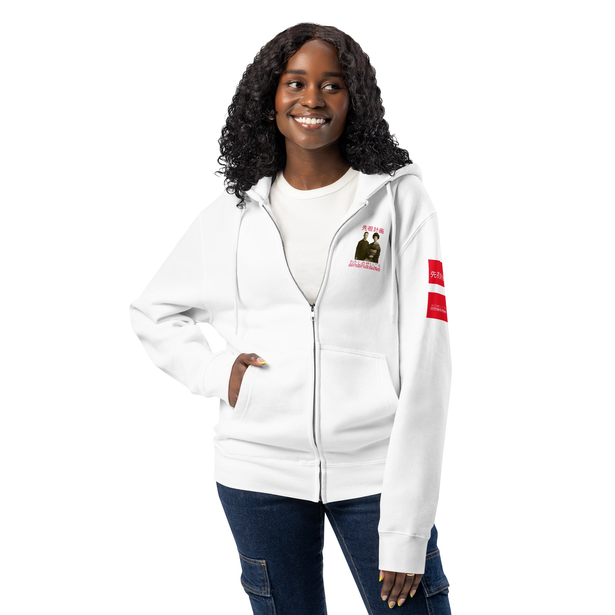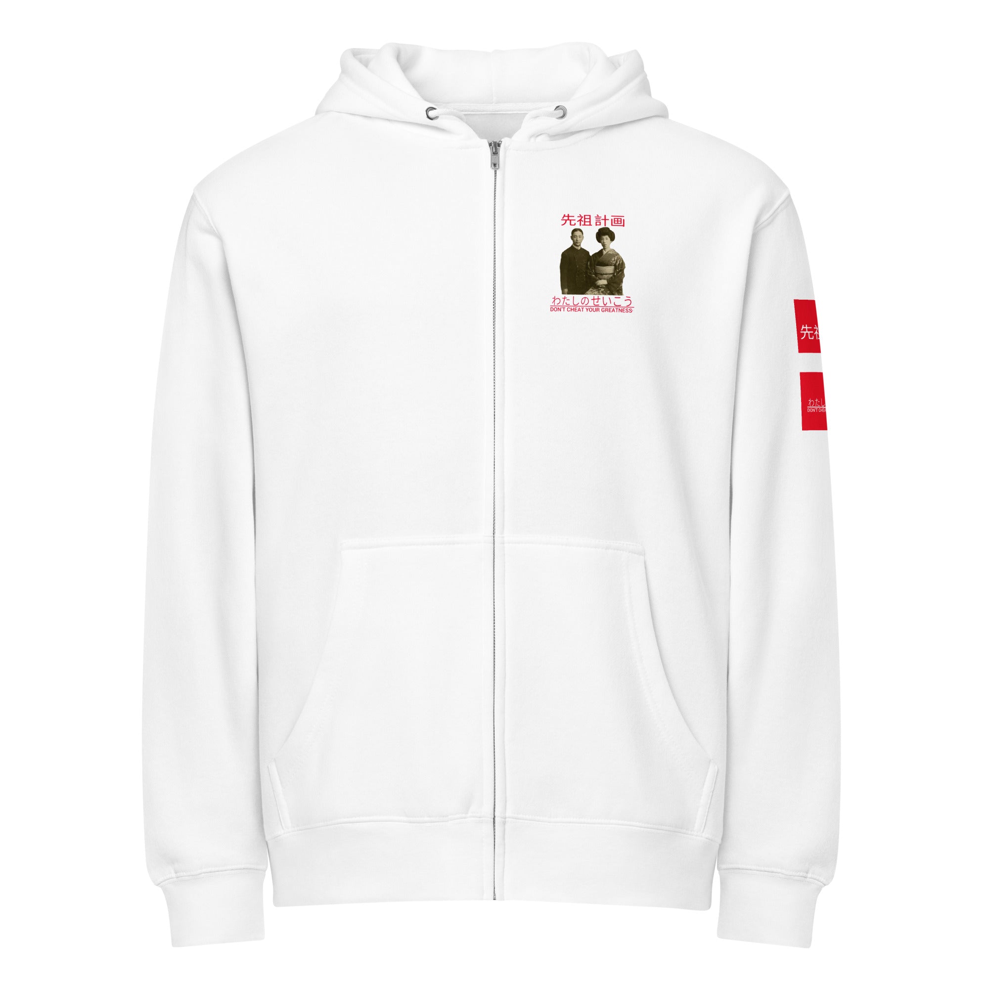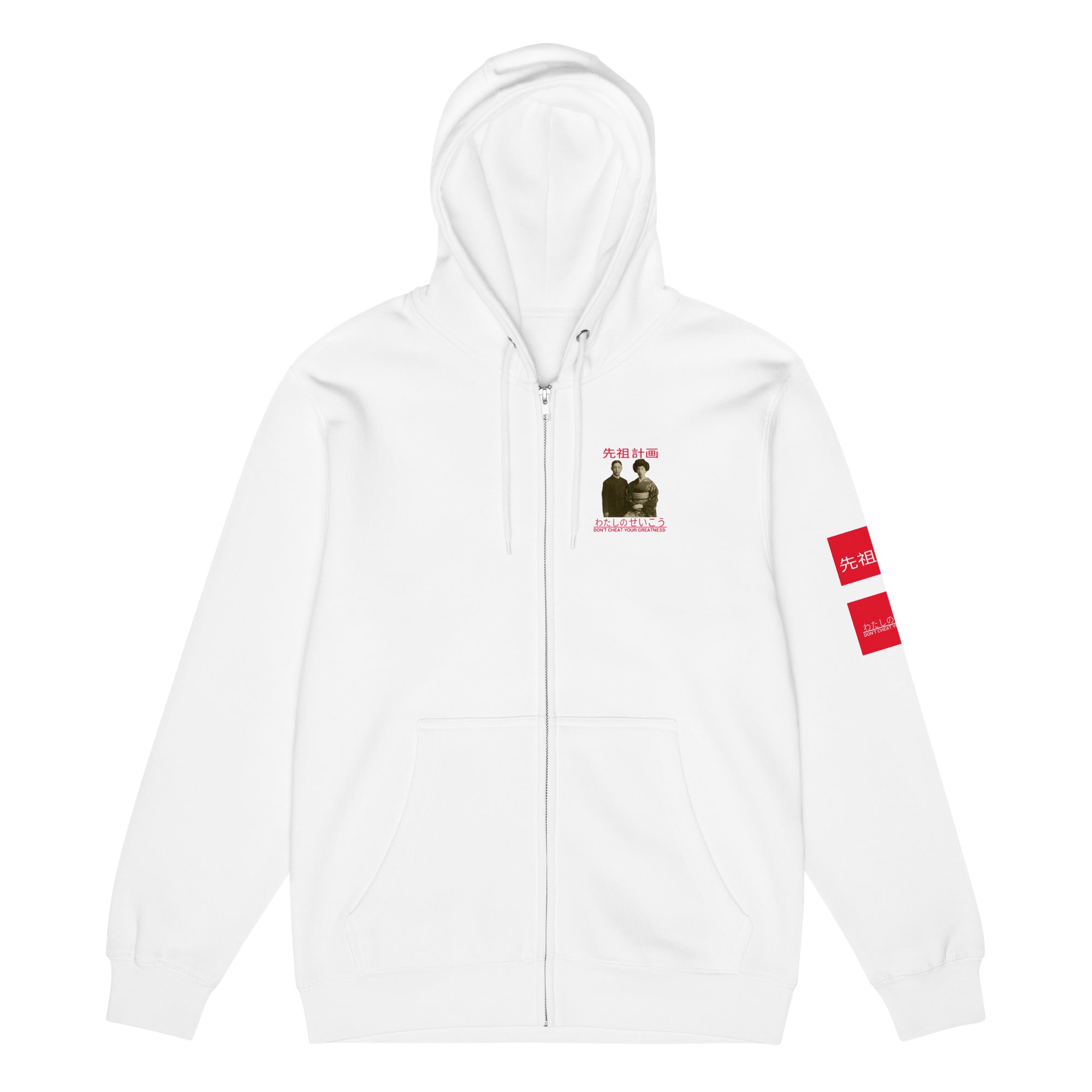 Ancestors+ Japanese Family White Logo ,Red Stripes Premium full zip hoodie