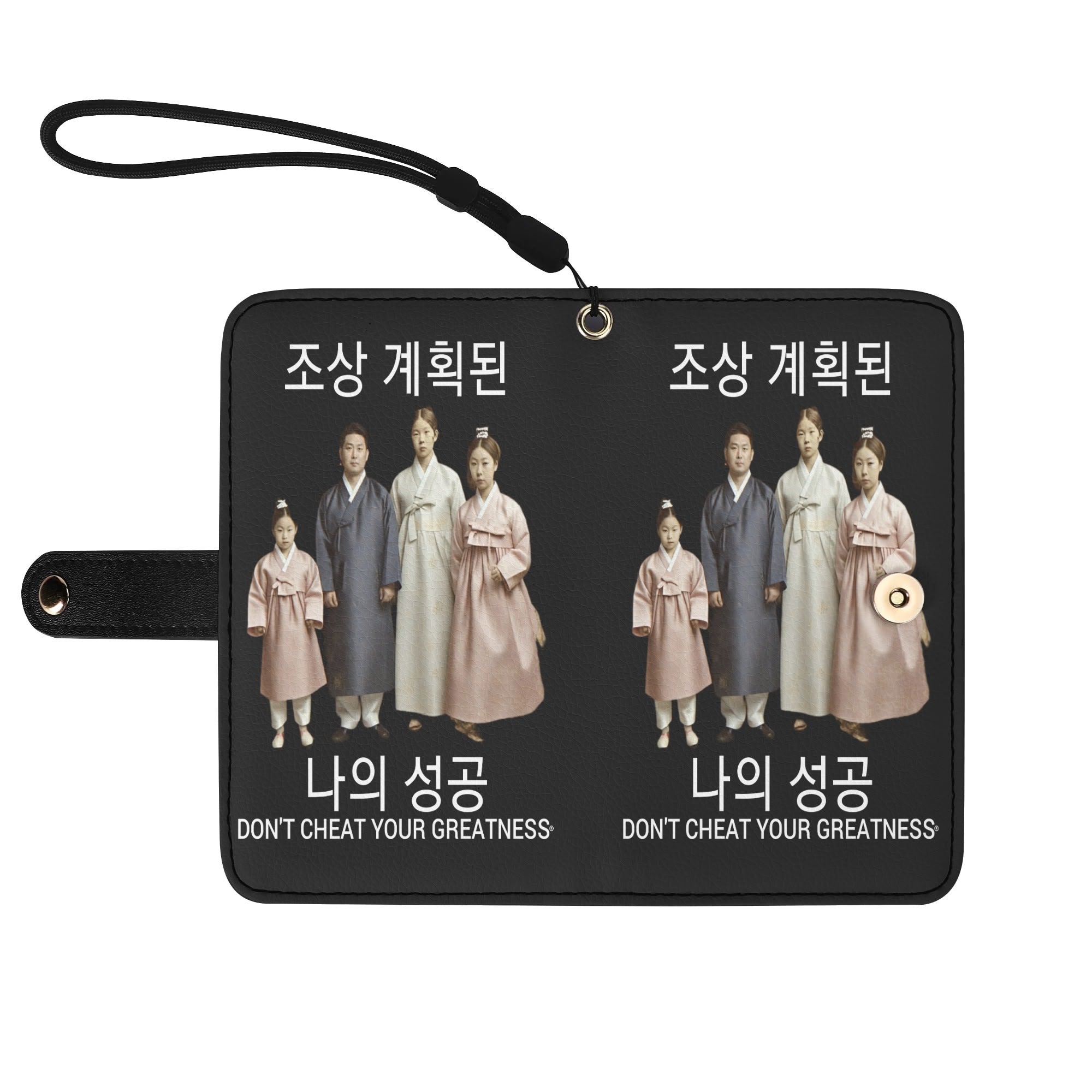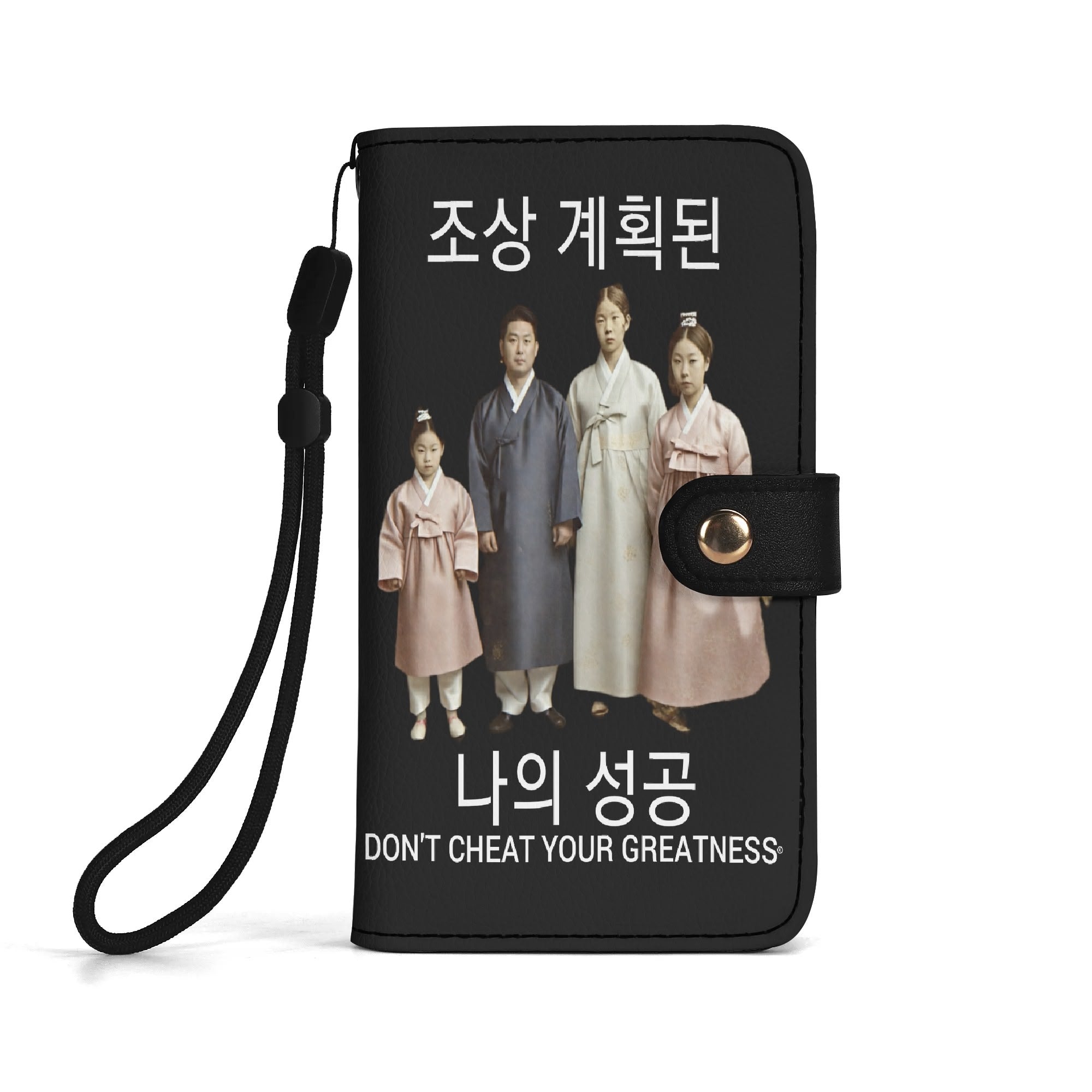 Ancestors+ Korean Family, White Logo ,Black Phone Flip Case PU Leather Cover for Most Mobile Phone Models