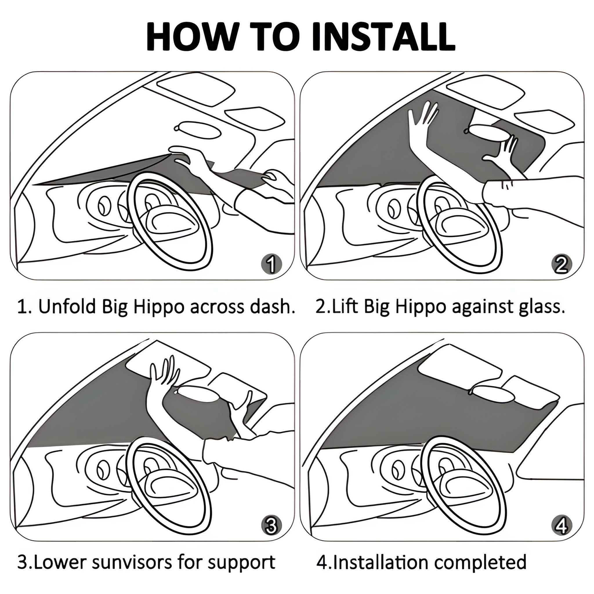【Usage】Place the concave end upwards, and use two suction cups to attach the sunshade to the windshield through the eyelets. Please check the size of your windshield to ensure a proper fit.