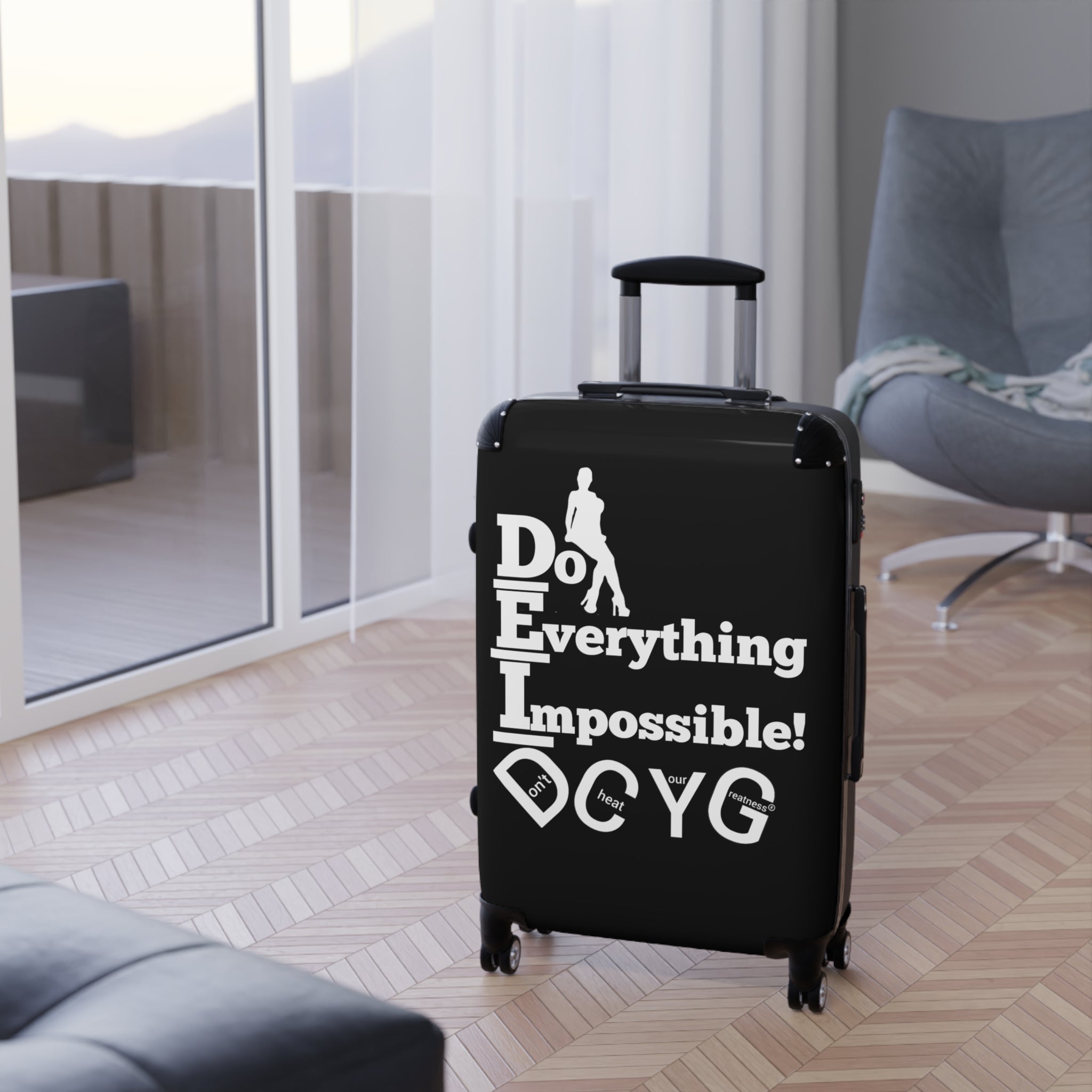 Please note: Your design is printed on a canvas that may slightly crease near the suitcase's edges.