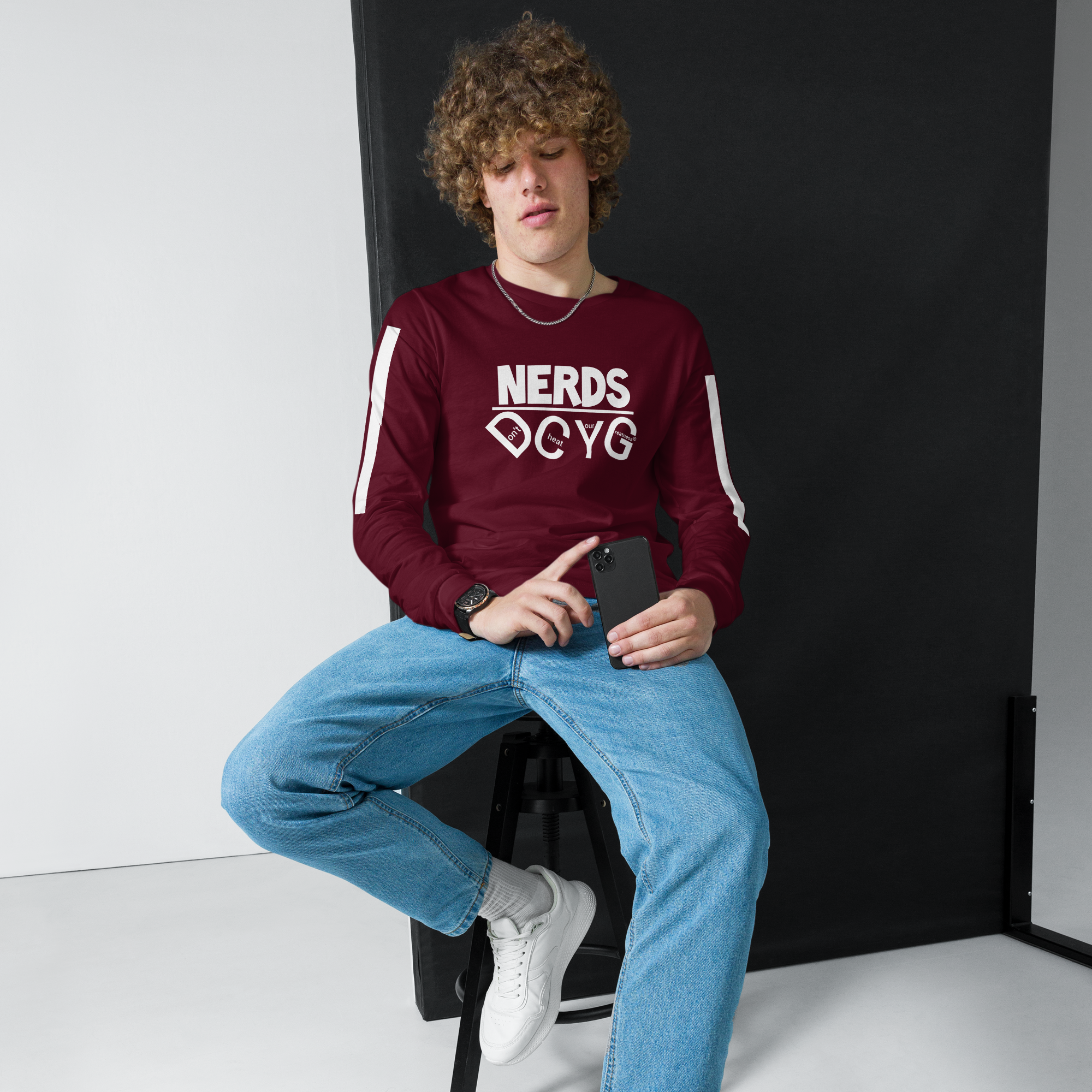 DCYG NERDS White Logo Unisex Long Sleeve Tee